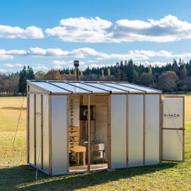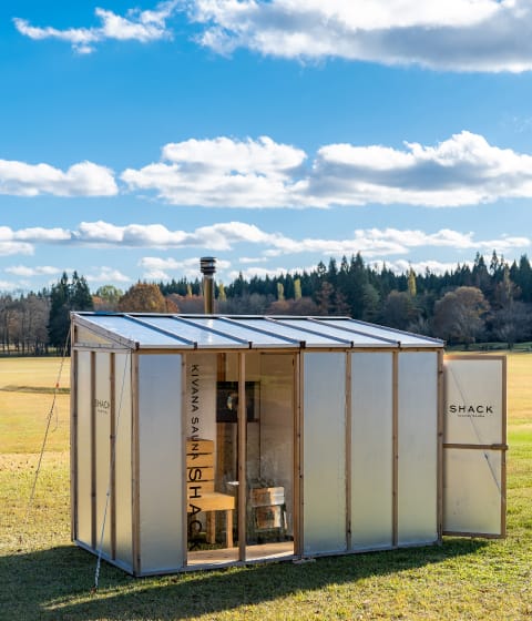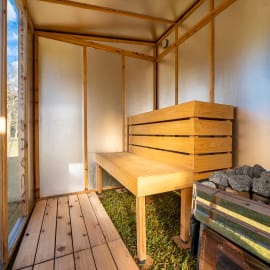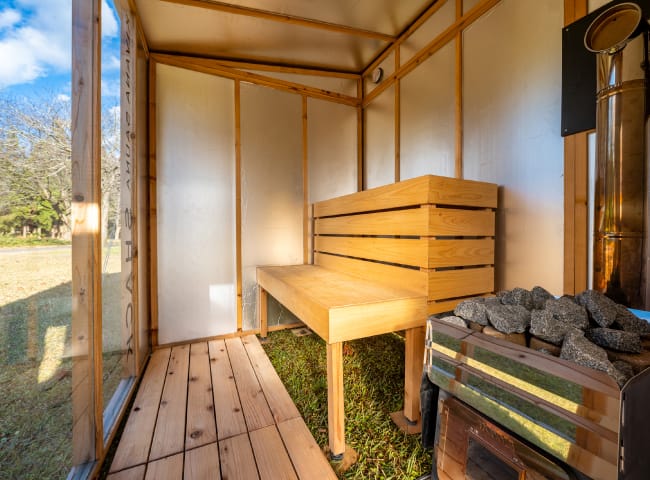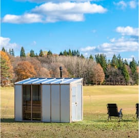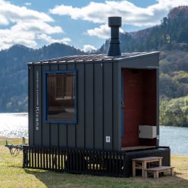 テントサウナと小屋型サウナの“ちょうど真ん中”。軽快さと本格的な熱環境を両立した、Kivanaの簡易サウナモデルです。外壁は不燃断熱材仕上げで、安全性と断熱性能を兼備。床を持たない構造により、自然の地面と一体化した開放的な体験を楽しめます。組立・分解が簡単で、トラック等車輌積載も可能なため移動も容易。イベント・キャンプ・災害時利用にも最適です。熱源は薪ストーブ・電気ヒーターのどちらも選択可能。特に移動設置を前提とする場合は、薪ストーブ仕様が推奨されます。自分のスタイルに合わせてカスタマイズでき、“DIY感覚で楽しむサウナ”として多くのファンに親しまれています。